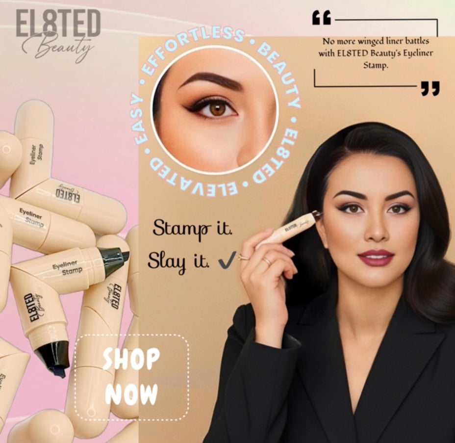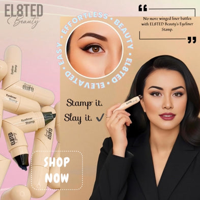 Say goodbye to uneven wings, shaky hands, and wasted time! EL8TED BEAUTY’S Eyeliner Stamp is your new secret weapon for flawless, fierce liner—in literally no time. ✨ Why You’ll EL8TED Beauty’s EYELINER STAMP: • SWEAT-PROOF • WATERPROOF • SMUDGE-PROOF • EASY-TO-USE Super Fast – Just stamp, line, and go. Perfect wings in under 3 minutes? Yes, it’s that easy. Always Even – Get matching wings on both eyes without the drama. No guesswork, no makeup wipes, no starting over. Sharp + Defined – Creates a precise, clean flick every single time—like a pro did it. Beginner-Approved – Whether you’re a makeup newbie or just in a rush, the eyeliner stamp makes glam effortless. Perfect On-the-Go – Busy morning? Late for a date? Keep it in your bag for quick touch-ups anywhere, anytime.